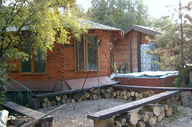 number. Behind this lodge is a lawn area with BBQ hot tub, and fire pit