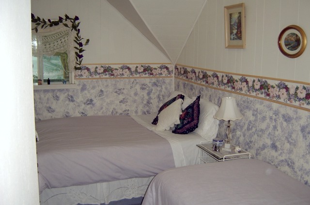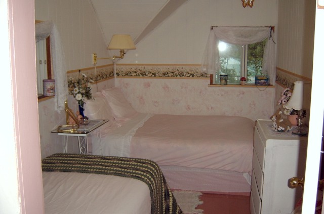 vintage and contains a bath and a half, two bedrooms, each with a double and