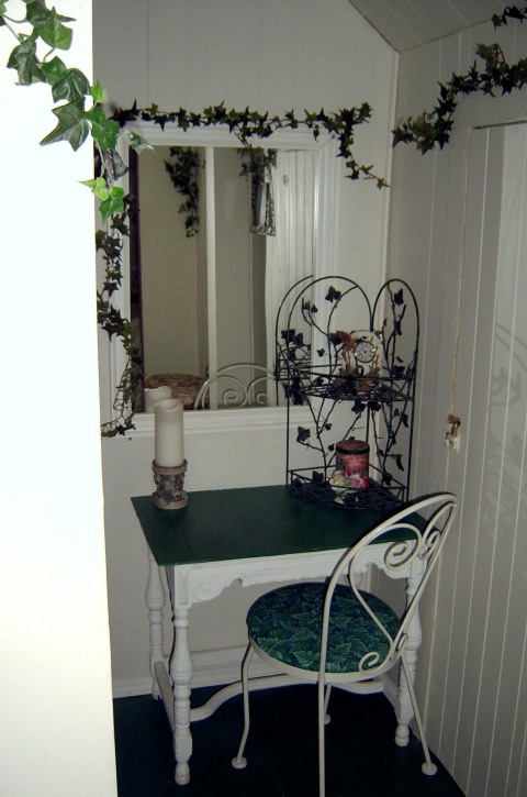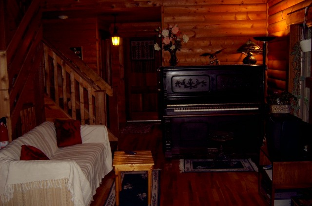 the loft overlooking the living room fire place and piano. It is of 1980's